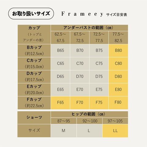 骨格タイプ別に設計されたブラジャーFrameey(R)フレーミーは、骨格診断アナリストの二神弓子先生と創業90年のメーカールシアンの共同開発により誕生。