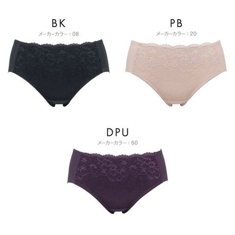さらりとやわらかい素材に、繊細なレースを組み合わせた上品なデザイン!タテヨコナナメに伸縮するので、心地よくフィットします。後脚口は、アウターにひびきにくく、くいこみにくいストレッチレース仕様。