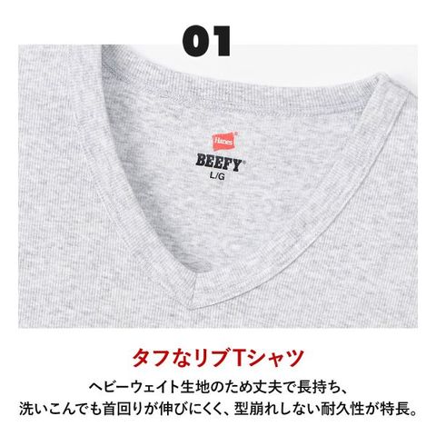 BEEFY(ビーフィー)のコンセプトを体現するタフなリブVネックTシャツです。