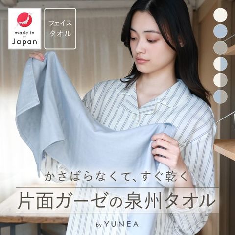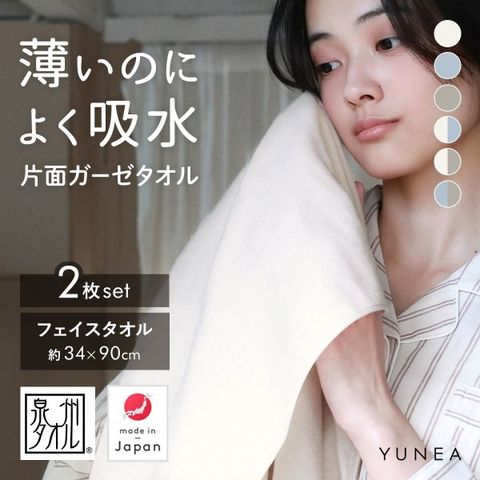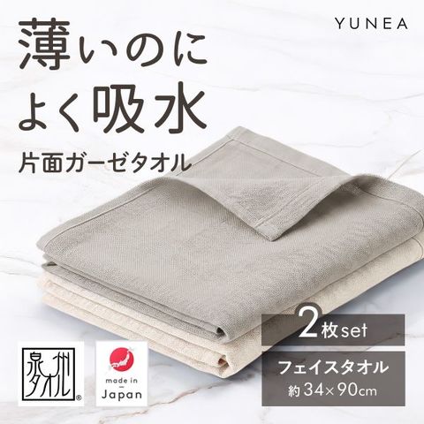 日本製 フェイスタオル 2枚セット ガーゼ 片面ガーゼ 吸水 速乾 薄手 コンパクト おしゃれ 無地 まとめ買い ギフト YUNEA
