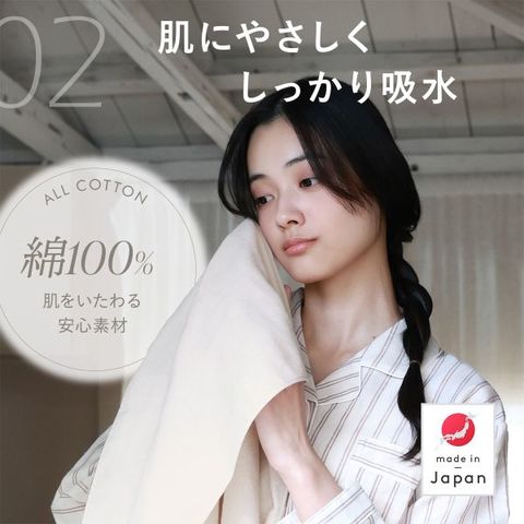 伝統ある「泉州タオル」の高い技術で作られているため、独自の後晒し製法により使い始めから高い吸水性を発揮。清潔で快適な使い心地をお楽しみいただけます。