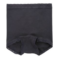 横に伸縮するリブ生地を使用しているのでお尻にフィットしはき心地が良いです。ウエストレースで上品な印象に。脚口にはミニレースを施し、ボトムにひびきにくい。サイドに縫い目がないのでごろつかずなめらかな着用感です♪綿100%なのでお肌にやさしいです。