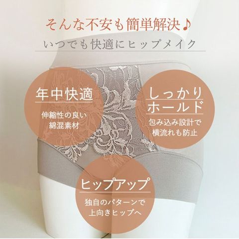 楽な着心地と立体パターンで、理想のヒップラインをメイクする補整ショーツです。重力による下垂や、お尻についてしまった段差・食い込み等のヒップの悪いクセをリセットしてくれる、ウエストからヒップまでをすっぽりと包み込む深ばきタイプです。