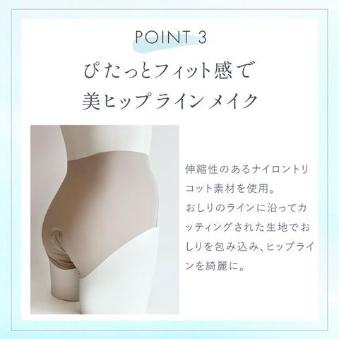 おへそまでカバーする深ばき仕様で、ウエストからヒップまでをすっぽりと包み込みます。お尻のラインに沿ったカッティングで、流れたお肉をきれいに包み込み、美しいヒップラインを演出。