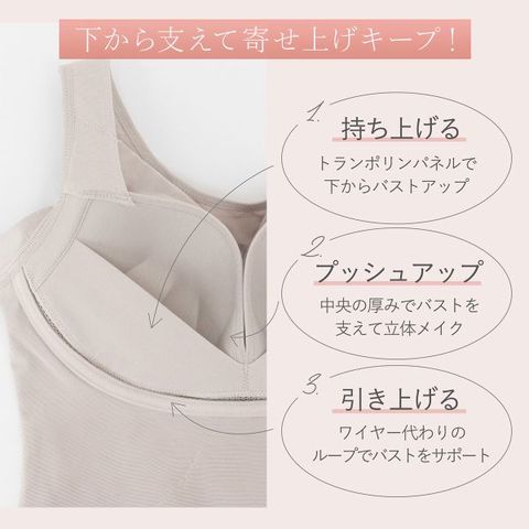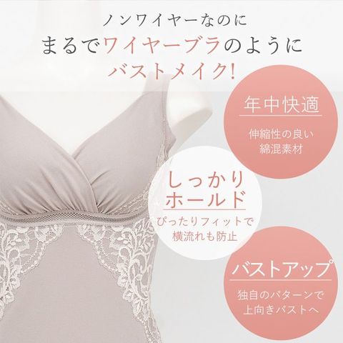 楽な着心地とバストアップを両立!理想のバストラインをメイクするノンワイヤー補正ブラキャミです。