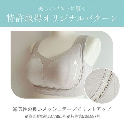 柔らかな着心地と、肌への負担や締めつけを感じにくい縫製仕様とパターンで体を優しく包み込むため、ナイトブラとしての着用もおすすめです。
