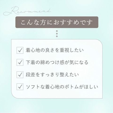 締め付けが気になる方、段差やくい込みをすっきり整えたい方、着心地の良さを重視される方におススメです。