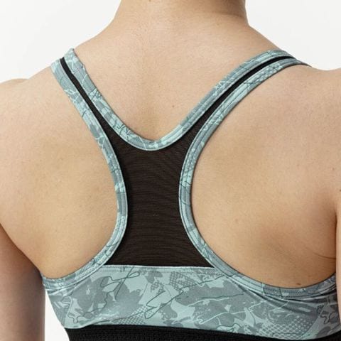汗をかいてムレやすい背中上部とアンダーバストはメッシュ仕様にすることで、熱をこもらせず違和感なくエクササイズに集中できるストレスのない着用感です。