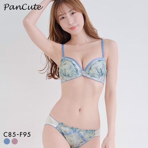 パンキュート らくちんソフトワイヤー フラワープリント刺繍 ブラセット CDEF80-95 グラマー アンダー大きいサイズ 脇肉 谷間 美胸 PanCute