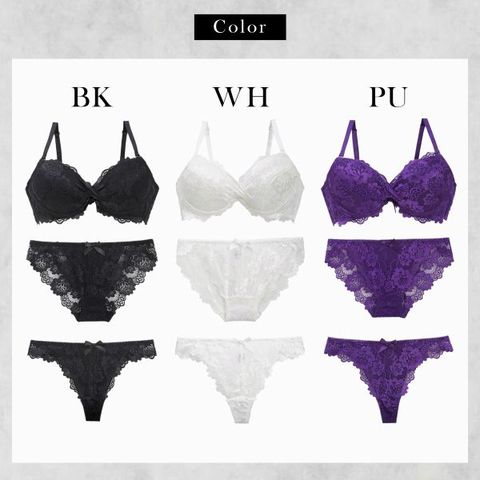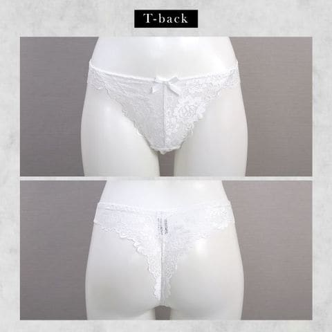 ショーツはデイリーに使いやすいノーマルと、セクシーなTバックの2タイプがセット。総レース仕様でくいこみにくくラインも響きにくいのでヒップラインを魅力的に演出します。