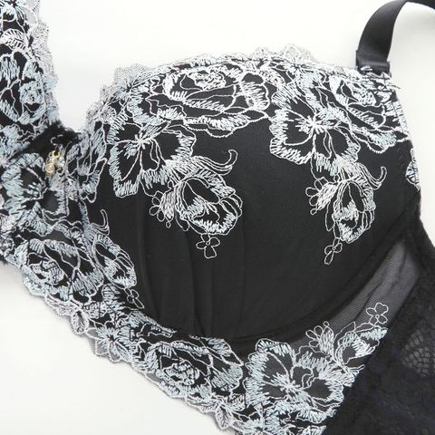 グラマーさんに嬉しい、グラマーサイズ専用デザイン★やわらかな花びらを優雅に描いたローズ刺繍が美しい上品なブラセット。