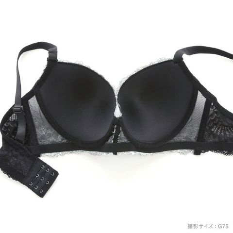 カップ脇は伸びない素材の裏打ちとボーンで、着装時の安定感を高めています。バックはやわらかなチュールパワーネットにストレッチレースを重ねたW使いで、しっかりと安定感のあるつけ心地です。