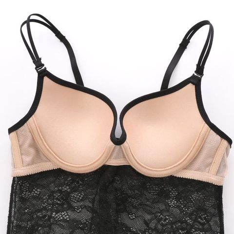 レースキャミソールにブラの機能がそのまま搭載!もっちり下厚のモールドカップが、やわらかくバストにフィットし、つけるだけで自然な丸みの美胸シルエットを演出します。
