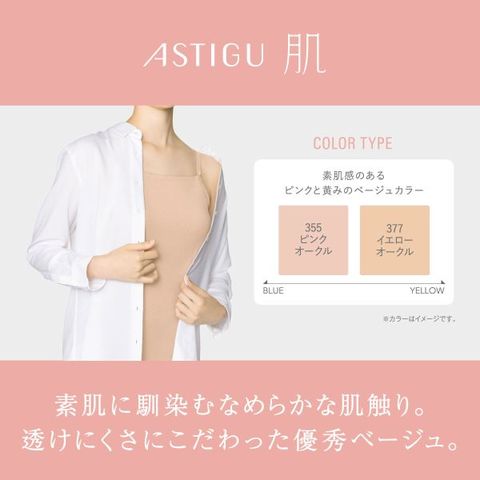 ASTIGUからスッと素肌になじむインナーキャミソールが登場しました。透けにくさにこだわった特徴的なベージュカラーがポイントです。袖、襟ぐり部分は熱圧着仕様で、シルエットに響きにくいのが嬉しいポイントです。肌触りは、シルクのような光沢感と滑らかな肌触りの「テンセル」繊維を仕様。着ぶくれしない薄さで素肌と一体化するような仕様になっています。