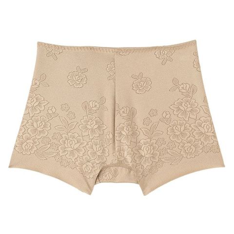 お尻をすっぽり包み込む1分丈設計で、動いても食い込みにくく安心感抜群。光沢感が美しい花柄のジャガード織りが、大人の女性の足元を上品に彩る優秀ショーツです。