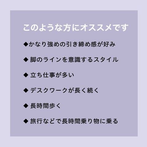 やや強めの引き締め、シェイプストッキング。太もも13hPa、ふくらはぎ21hPa、足首26hPaの引き締めです。以下のような方におススメです。