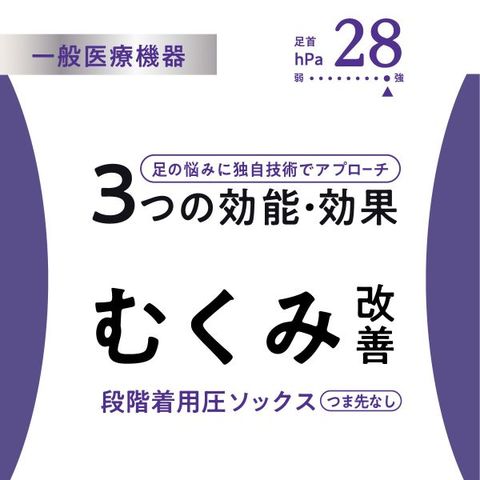 一般医療機器設計のハイソックスで、足首部分は28hPaの着圧仕様です。