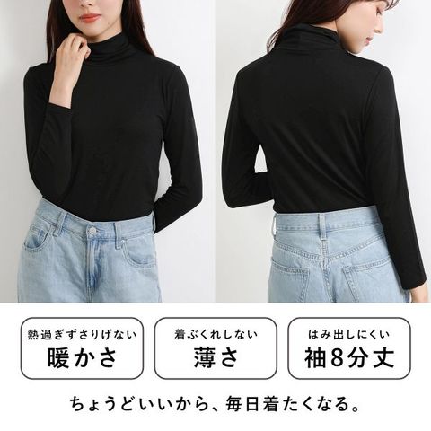 250819 女性用 あったかインナー レディース 長袖 八分袖 婦人用 トップス インナーシャツ アンダーシャツ 秋冬 タートルネック 首 チクチク 長袖シャツ 長袖インナー 脇汗パッド 汗取り 吸湿 発熱 吸汗速乾 肌着 下着 重ね着 着ぶくれしない 裏起毛なし 保温 防寒 防寒対策 寒さ対策 あったかい あたたかい 暖かい