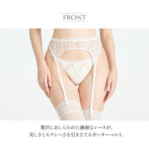 贅沢にあしらわれた繊細なレースが、美しさとセクシーさを引き立てるガーターベルト。華やかなデザインがウエストを美しく飾り、女性らしいシルエットを演出します。ランジェリースタイルの完成度をぐっと高めるラグジュアリーなアイテムです。ガーターベルトは身体のラインにメリハリを与えてくれる視覚効果もあります◎同コレクションGraceのランジェリーと合わせるとより魅力的に。