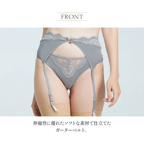 ガーターベルトは視覚的にボディラインを美しく際立たせる効果もあります。同コレクションのランジェリーとのコーディネートがおすすめです。