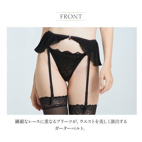 繊細なレースに重なるプリーツが、ウエストを美しく演出するガーターベルトです。透け感のあるプリーツから覗くレースが上品な色気を漂わせます。