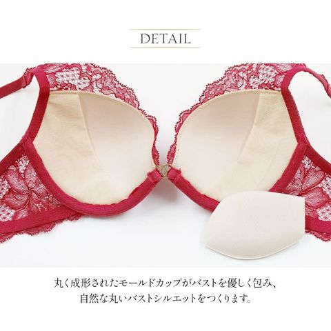 高級感漂うベロア生地と繊細なレースを贅沢に組み合わせたモールドカップブラジャー。ストラップまで施されたレースが肩への負担を軽減、カップとバストの段差もカバーします。