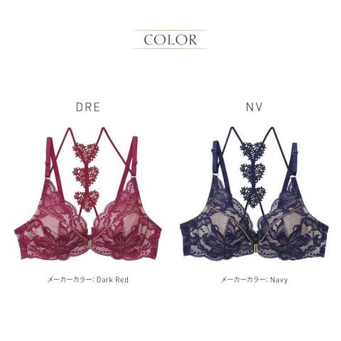 | 仕 様 | ・フロントホック ・モールドカップ ・パッド取外し:可能 ・肩紐取外し:不可 ・ワイヤー入り ・サイドボーン:あり |