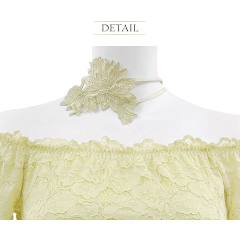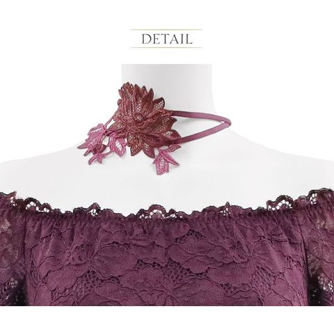 繊細なフラワーレースが全身を美しく包み込む、チョーカー付きオフショルダーボディスーツ。首元を飾るフラワーモチーフのチョーカーが、センシュアルで印象的なムードを漂わせます。