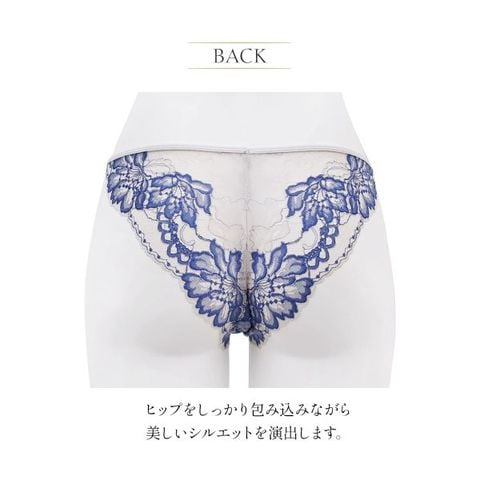 上品で繊細なフラワーレースを贅沢に使用したショーツ。ヒップをしっかり包み込みながら、美しいシルエットを演出します。柔らかな生地とストレッチ性のあるフィット感で、長時間の着用でも快適。フロントにはレースと同色の肌触り柔らかなチュール生地を裏打ち。繊細なディテールが魅力を引き立て、特別な日にもデイリー使いにもぴったりな一枚です。