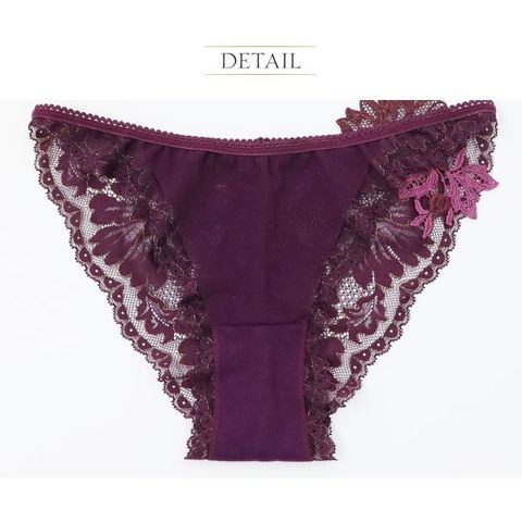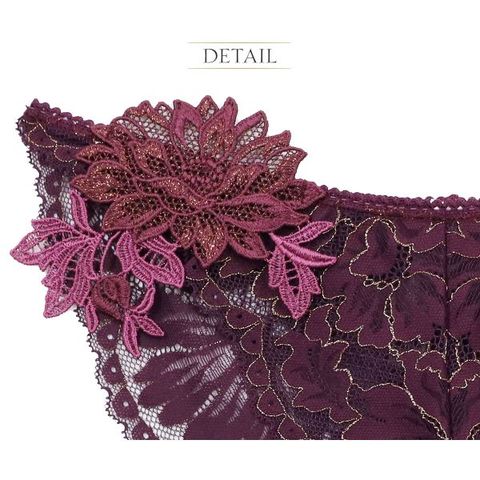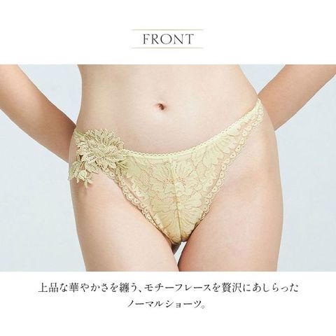 上品な華やかさを纏う、モチーフレースを贅沢にあしらったノーマルショーツ。アシンメトリーに配置されたフラワーモチーフが、洗練された大人のバランスを演出します。