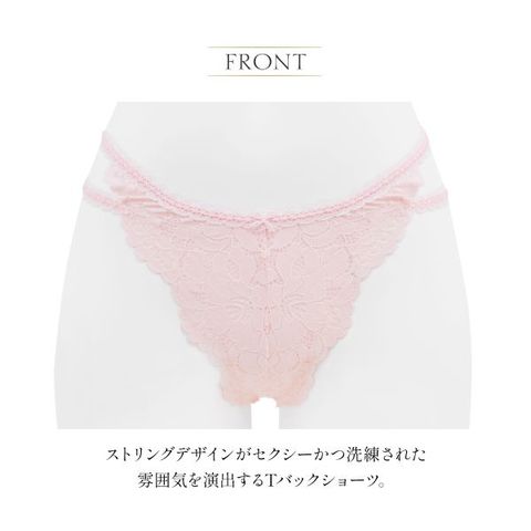ストリングデザインがセクシーかつ洗練された雰囲気を演出するTバックショーツ。リボンモチーフをあしらい、フェミニンなアクセントをプラス。フロントにはレースと同色の肌触り柔らかな生地を裏打ちしました。同コレクションでのコーディネートがおすすめです。
