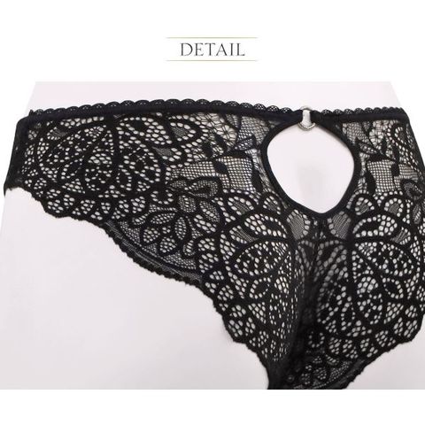 繊細なレースを贅沢に使用した透け感のあるセクシーなショーツ。Tバックよりも安心感があり、ノーマルショーツよりもすっきりしたシルエットのチーキーショーツです。バックスタイルの大胆なカッティングデザインもポイント。レース一枚で蒸れにくく、快適な履き心地です。