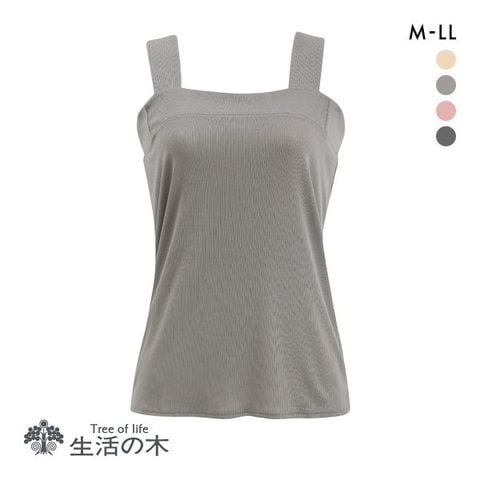 生活の木の原料(アプリコット)を使用した、保湿効果のあるタンクトップ。肌離れのよいレーヨン混のリブ素材を使用。ブラジャーのストラップや胸元が見えにくい安心設計に。ルームウェアとしても使用できる優れものです。