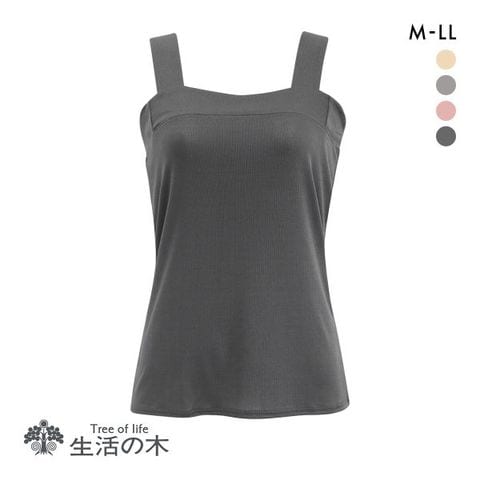生活の木の原料(アプリコット)を使用した、保湿効果のあるタンクトップ。肌離れのよいレーヨン混のリブ素材を使用。ブラジャーのストラップや胸元が見えにくい安心設計に。ルームウェアとしても使用できる優れものです。