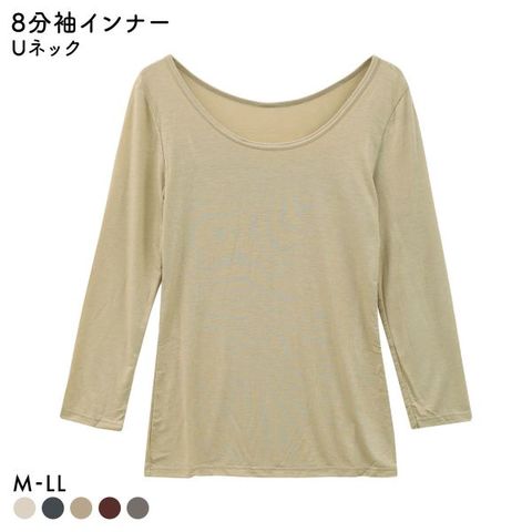 素肌メイク Uネック 8分袖シャツ レディース インナー あったか 大きいサイズ