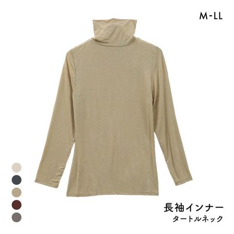まるで素肌のように薄くて暖かい吸湿発熱素材を使用したタートルネック長袖シャツです。レーヨン特有のやわらかな肌触りと、よく伸びて身体にしっかりフィットします。