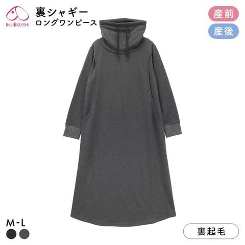 マタニティパジャマ 冬 裏シャギー らくちん ワンピース ルームウェア ワンマイルウェア マタニティウェア 犬印 INUJIRUSHI