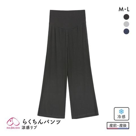 犬印 INUJIRUSHI シルクタッチ 涼感リブ らくちんワイドパンツ 産前・産後 マタニティ ルームウェア パジャマ ワンマイルウェア
