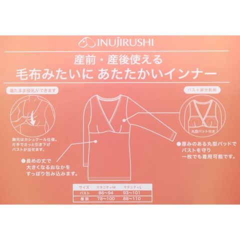 犬印 INUJIRUSHI 産前産後使える 毛布みたいにあたたかいインナー 8分袖 産前-産後 マタニティ 授乳インナー ML パット付き カシュクール 裏ボア