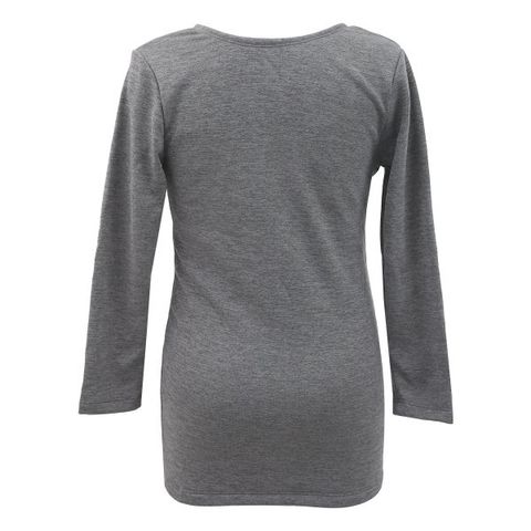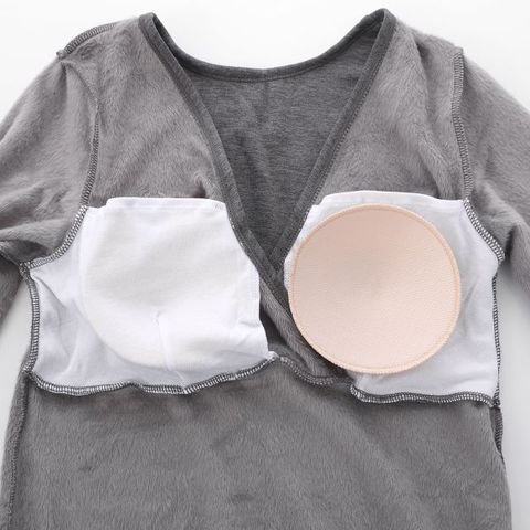 バスト部分は厚みのある丸形パッド入りで、1枚でも着られるのが嬉しいポイント。そのまま横になれるので、寒い季節の夜中の授乳もあたたかくママの身体に寄り添います。インナーとしても使いやすい8分袖です。