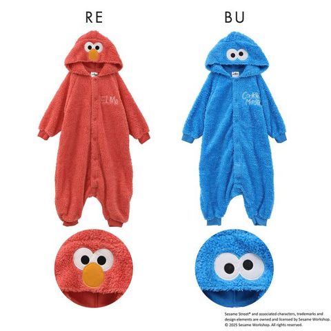 大人気のなりきりルームウェアからセサミストリートのエルモとクッキーモンスターが登場★人気キャラクターのとってもかわいい着ぐるみです。かわいいだけじゃなく、あたたかいのも嬉しいポイント。