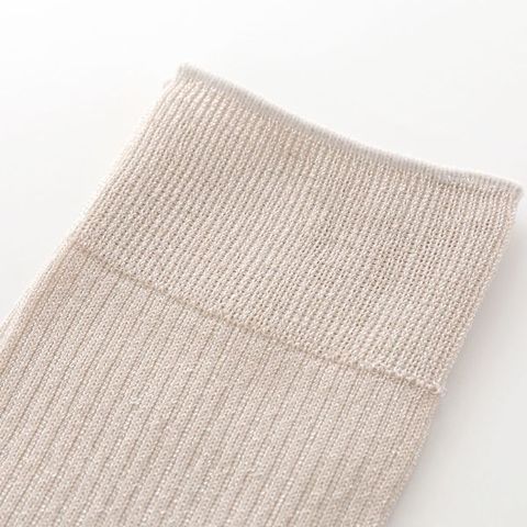 身生地はガサガサしにくい素材を使用し、キラっと抜け感のある足元に。シンプルなデザインなので、さまざまなコーディネートと好相性。スニーカーやサンダル、フラットシューズやパンプス等、足元のアクセントにおすすめです。