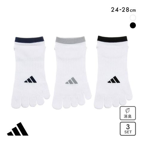 アディダス ベーシック スニーカー丈 5本指 ソックス 3足セット メンズ 靴下 adidas 破れにくい 消臭 24-26cm 26-28cm