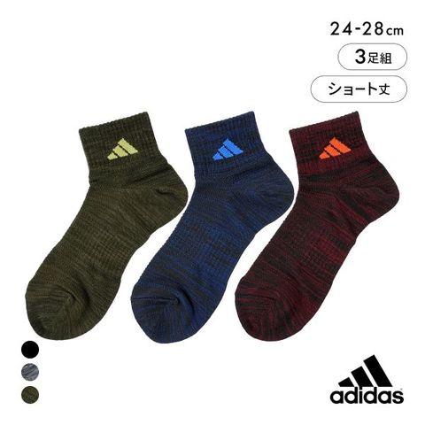 アディダス ストロング ショート丈 ソックス 3足セット メンズ 靴下 adidas 耐久性10倍 24-26cm 26-28cm