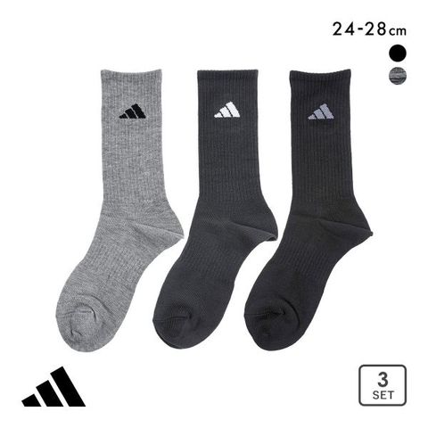 アディダス ストロング クルー丈 ソックス 3足セット メンズ 靴下 adidas 耐久性10倍 24-26cm 26-28cm