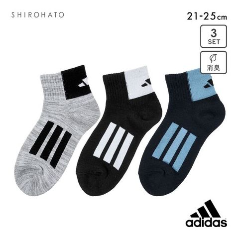 アディダス キッズ スリーバー ショート丈 ソックス 3足セット ジュニア ボーイズ 靴下 消臭 adidas