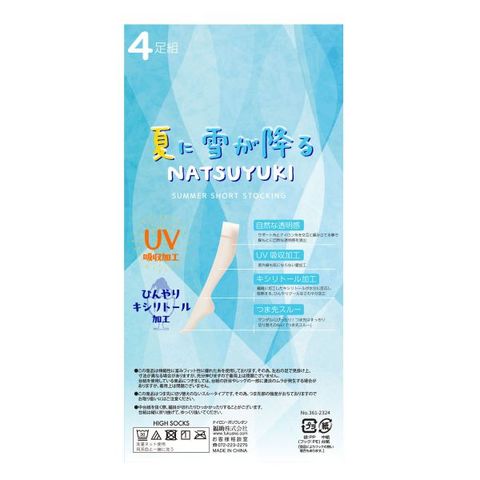 | 仕 様 | ・4足組 ・ひざ下丈 ・UV吸収加工 ・キシリトール加工 ・つま先スルー |