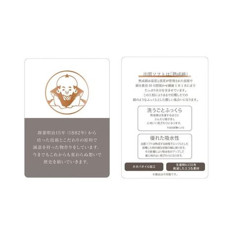 | 仕 様 | ・吸水 ・消臭 ・ホホバオイル加工 ・前開きタイプ |