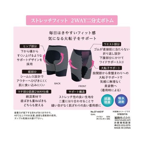 福助 満足 美姿勢 大転子サポート 2分丈ボトム レディース サポートインナー Fukuske