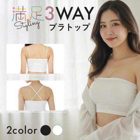福助 満足Styling 着こなしキレイ 3WAY ブラトップ レディース ノンワイヤー ブラジャー ワイヤレスブラ fukuske